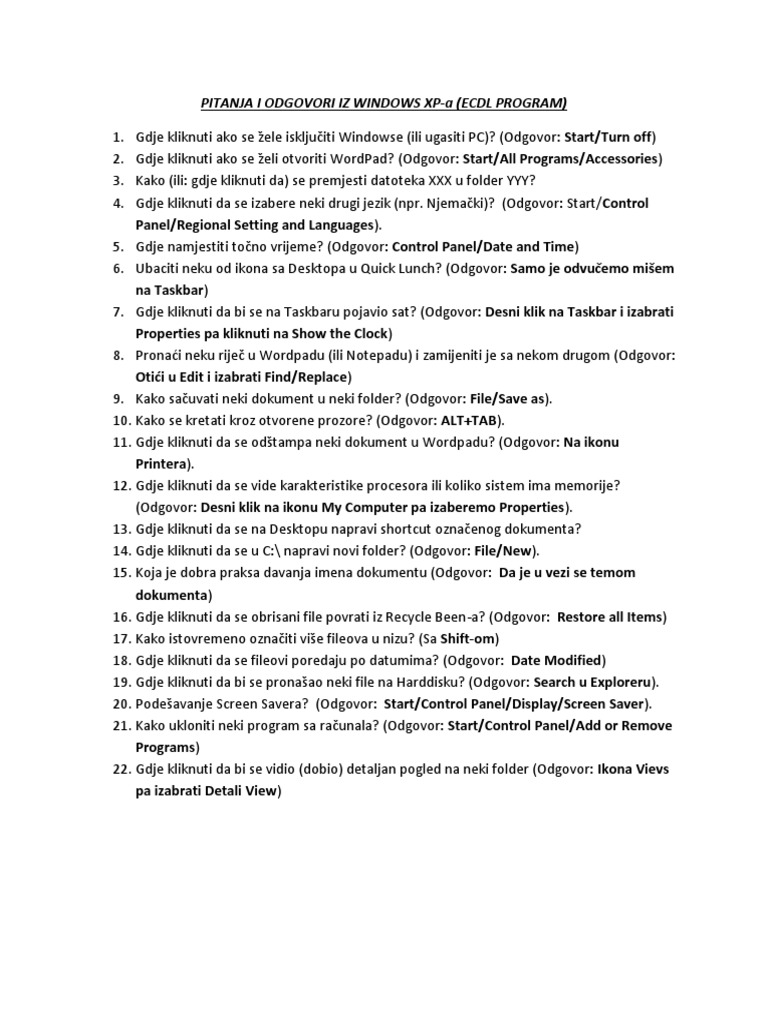 Ecdl Modul 4 Pitanja I Odgovori. Njihova hipoteza je da su mikrobe i dalje nastavile da žive unutar digestivnog trakta termita i poslije njihove smrti i nastavile razgradnju hrane sve dok je u potpunosti nisu razgradile, proizvodeći tako balončiće gasa. U testu koji imate pred sobom zahteva se da odgovorite na pitanja u vezi sa korienjem raunara.