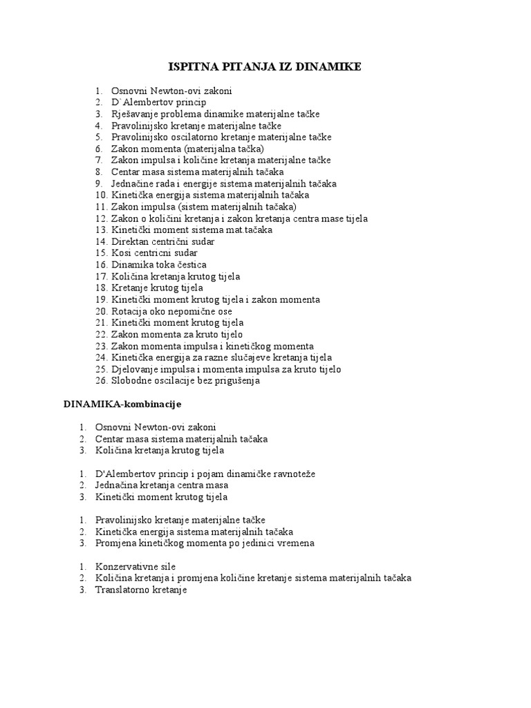 Ispitna Pitanja Dinamika. 50.00 kb, file name : Prikupila sam sva pitanja i skripte do kojih sam uspjela doći p.