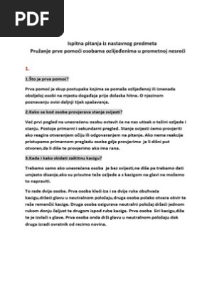 Prva Pomoc Pitanja I Odgovori 2019 Hak. Ispitna pitanja i odgovori iz predmeta prva pomoć. 24.prepoznavanje i prva pomoć kod unutarnjeg krvarenja!