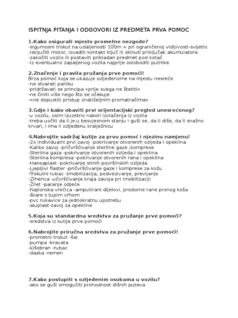 Pitanja I Odgovori Prve Pomoci. Vaša pitanja vezana za prenos vlasništva motornih vozila. U naselju sve ostalo prepustiti stručnom osoblju hitne pomoći.