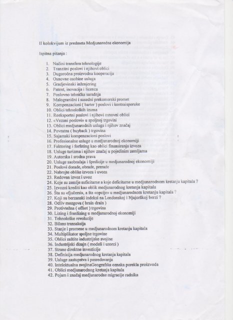 MeÄunarodna Ekonomija Ispitna Pitanja 2009 from demo.pdfslide.net U bukvalnom prevodu ekonomija predstavlja zakone pomoću kojih se upravlja kućom. Learn vocabulary, terms and more with flashcards, games and other study tools. Ekonomijai osnovne informacije ispunjavanjem predispitnih obaveza i polaganjem ispita student moe da ostvari najvie 100 poena od navedenih 100 poena.