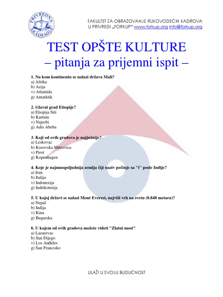 Pitanja I Odgovori Opste Kulture. Zabranjeno svako kopiranje video i/ili audio snimaka i postavljanje na druge kanale! 2015 detalji upisa na fakultetima beogradskog univerziteta.