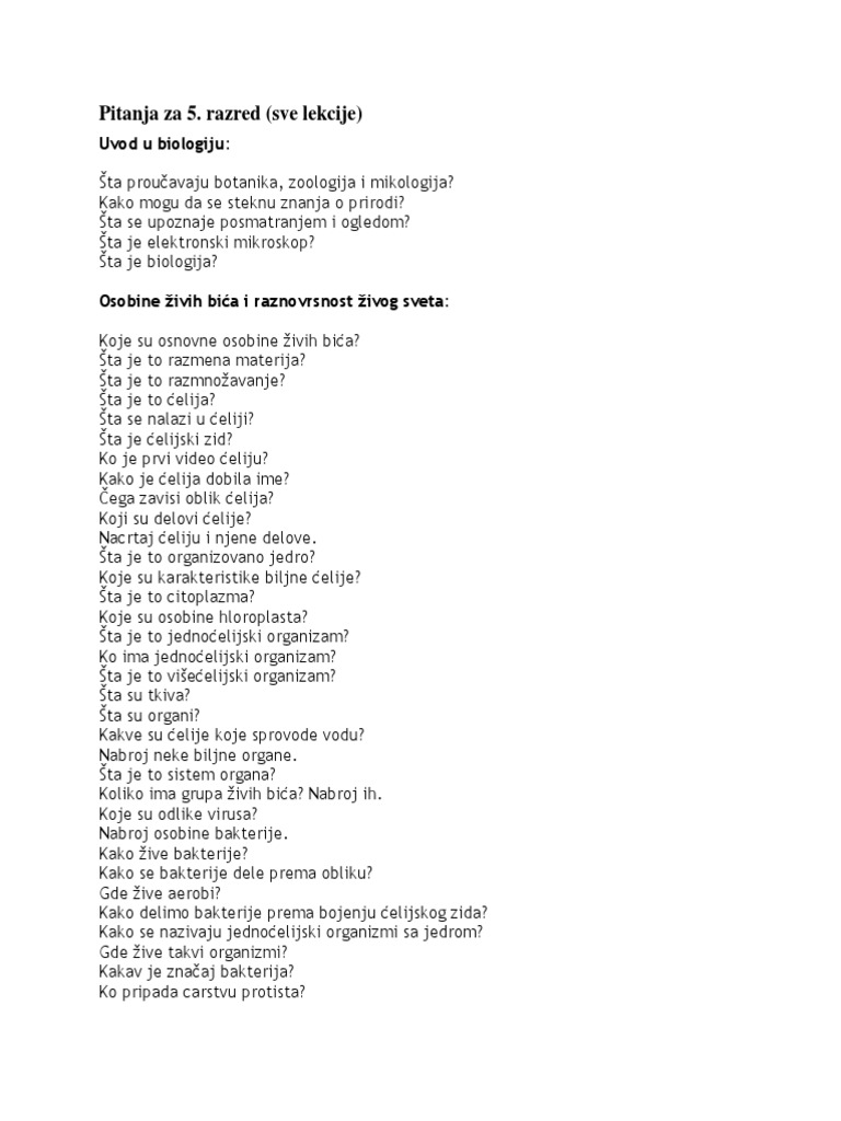 Pitanja Iz Biologije Za 5 Razred. Bas mi je drago sto se neko setio djaka i stavio pitanja iz biologije. Pitanja dakako mogu koristiti i drugi nastavnici prirode i biologije u svrhu ponavljanja, usmene provjere i sl.