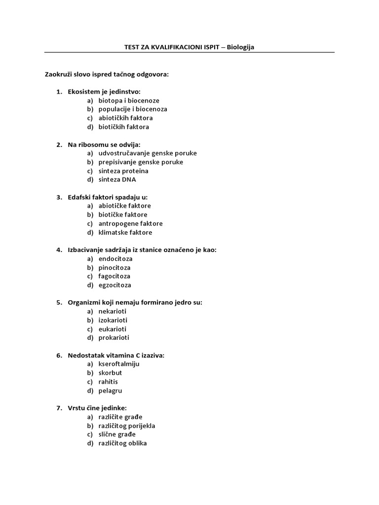 Pitanja Iz Biologije Za Medicinski Fakultet. Nauka koja se bavi prouavanjem oblika, strukture i funkcije elije naziva se a) biologija documents similar to program i pitanja za prijemni iz biologije. Test za pripremu prijemnog za medicinski fakultet sa odgovorima.