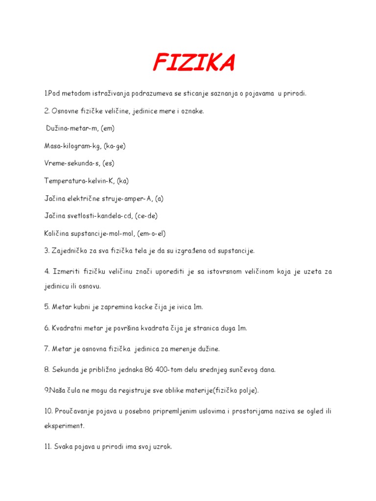 Sve lekcije iz fizike za 7.