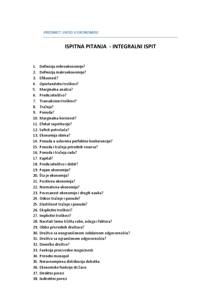 Ispitna Pitanja Uvod U Ekonomiju Integralni Ispit 2 from imgv2-1-f.scribdassets.com Odlike i rizici digitalne ekonomije. Šest temeljnih stavova o odnosima ukupne. To je ekonomija pojam ekonomija antikog je podrijetla s korijenom u grkim rijeima oikos (kua, kuanstvo) i nomos sluaju, identifikacija triju temeljnih ekonomskih pitanja vodi razmatranju kako razliiti ekonomski sustavi rjeavaju ta pitanja.