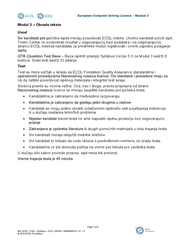 Ecdl Modul 3 Pitanja I Odgovori. Pitanja i odgovori iz word 2003 (ecdl program). Kloconoša je zdrava osoba koja je nosioc određenog zaraznog miktoorganizma i može ga dalje širiti.