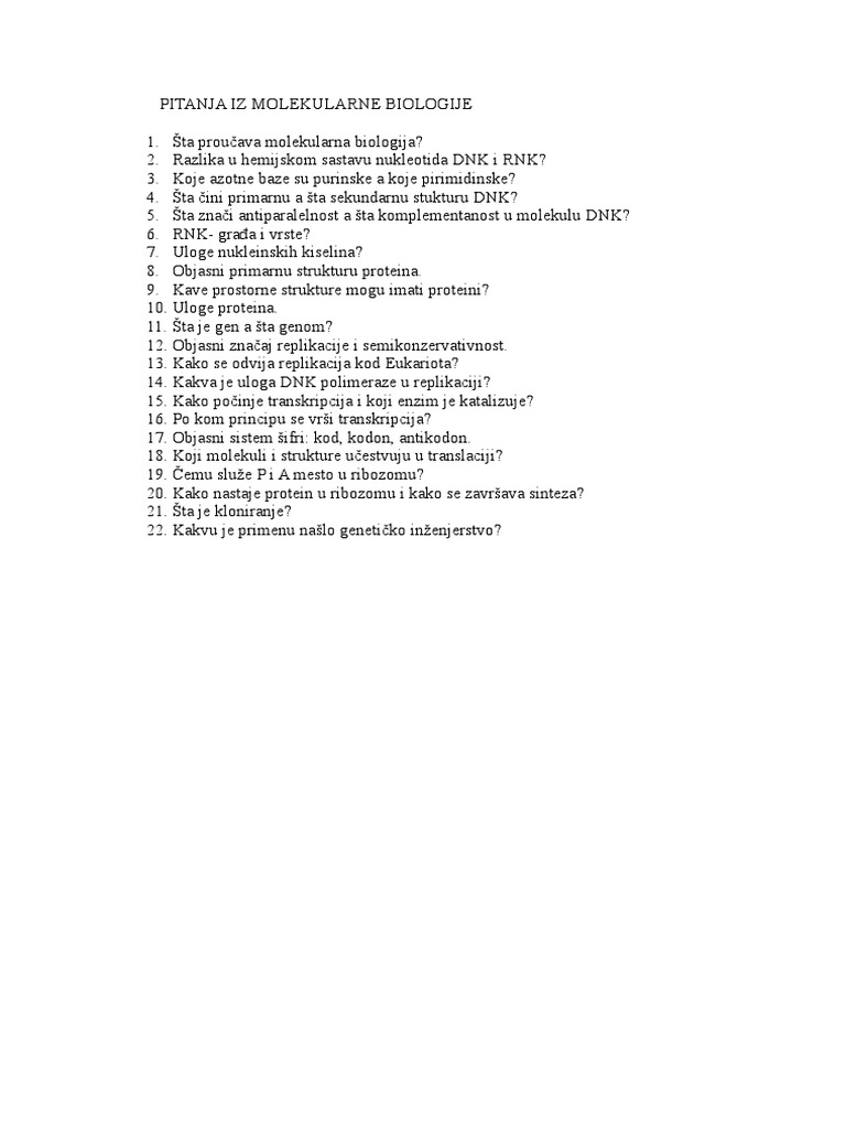 Pitanja Iz Molekularne Biologije. Nauka koja se bavi proučavanjem oblika, strukture i. Molekularna osnova procesa apoptoze 4.