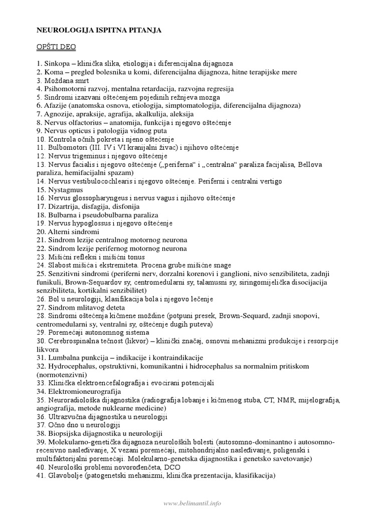 Ispitna Pitanja Iz Neurologije. Ovde možete preuzeti pitanja, iz praktičnog, dela za spremanje ispita iz oblasti laboratorisjke tehnike, hematologije 3 i 4, mikrobiologije 3 i 4, medicinske biohemije 3 i 4, za laboratorisjke tehničare, kao i ispitna pitanja iz oblasti medicinske biohemije za. Definicija, opšta svojstva i funkcije cnsa 3.