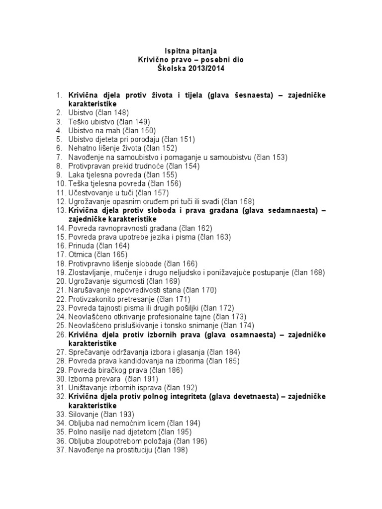 Ispitna Pitanja Krivicno Pravo. Metod i sistem nauke krivičnog prava 7. Povreda kz kao razlog za žalbu na presudu 5.