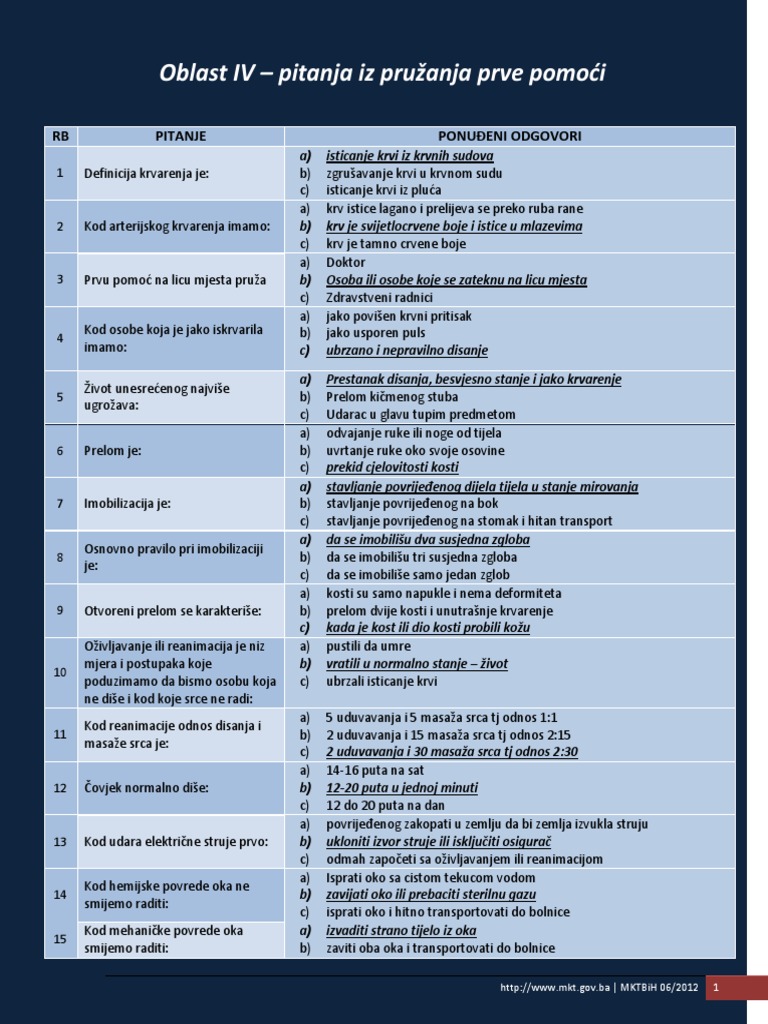 Prva pomoć pitanja i odgovori prva pomoć autoškola pitanja. Kandidat mora odgovoriti na sva postavljena pitanja a na temelju odgovora ovlašteni ispitivač ga ocjenjuje ocjenom zadovoljio ili. Ovo je prvi od deset testova za polaganje prve pomoći.