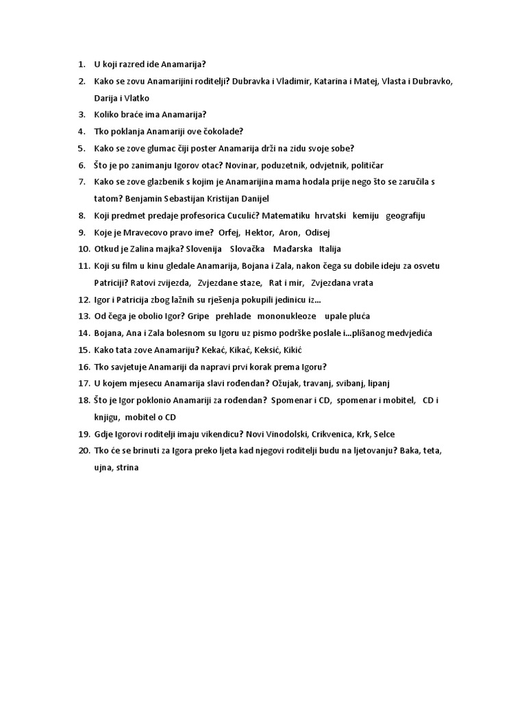 Pažnja znatiželjni čitaoci poklonici trivijalnih pitanja prosvetljeni tragači za čudnim činjenicama. 0 ratings 0 found this document useful 0 votes 513 views 1 page. Roman govori o ljubavi Anamarije i Igora koja je morala isprva prevladati nekoliko prepreka kako bi na kraju bila ostvarena.